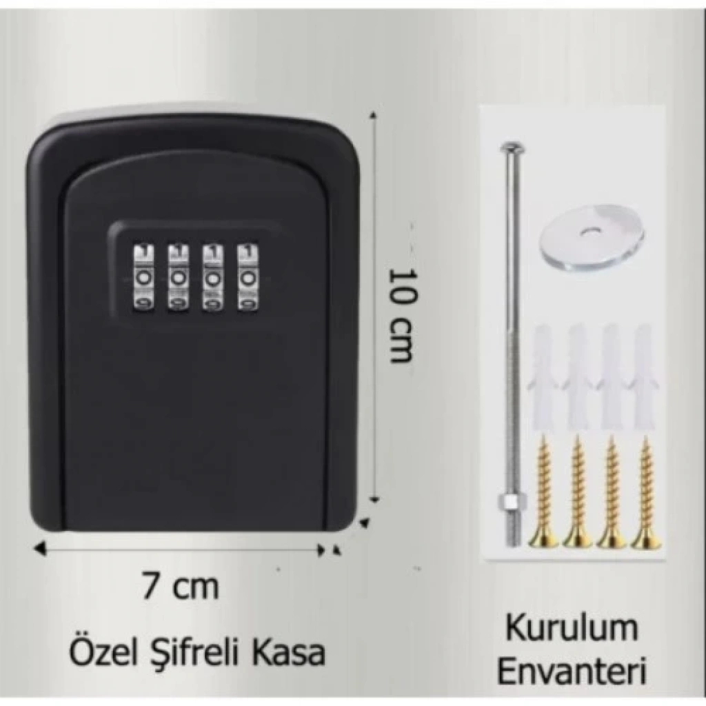 SİYAH ŞİFRELİ ANAHTAR VE EŞYA SAKLAMA GÜVENLİK KASASIÜrün ÖzellikleriSiyah şifreli anahtar ve eşya saklama güvenlik kasası, ev, ofis, yazlık veya Airbnb dairelerinde anahtar güvenliği için ideal bir çözümdür. 10 cm x 7 cm boyutunda ve 3,5 cm derinliğe sahip olan kasa, dört haneli şifreli kilit sistemi ile binlerce farklı kombinasyon seçeneği sunar ve yetkisiz erişimleri engeller.Şifre değiştirme özelliği sayesinde güvenliğinizi kolayca güncelleyebilirsiniz. Şifre belirlemek ve değiştirmek için kasa açıkken şifre pimini B konumuna getirip şifreyi belirleyin pimi A konumuna getirdiğinizde artık yeni şifre geçerli olacaktır. Sert plastikten üretilmiş dayanıklı yapısı sayesinde paslanmaz ve farklı hava koşullarına karşı uzun süreli kullanım sağlar. Paket İçeriği1 adet Siyah Şifreli Anahtar ve Eşya Saklama Güvenlik Kasası